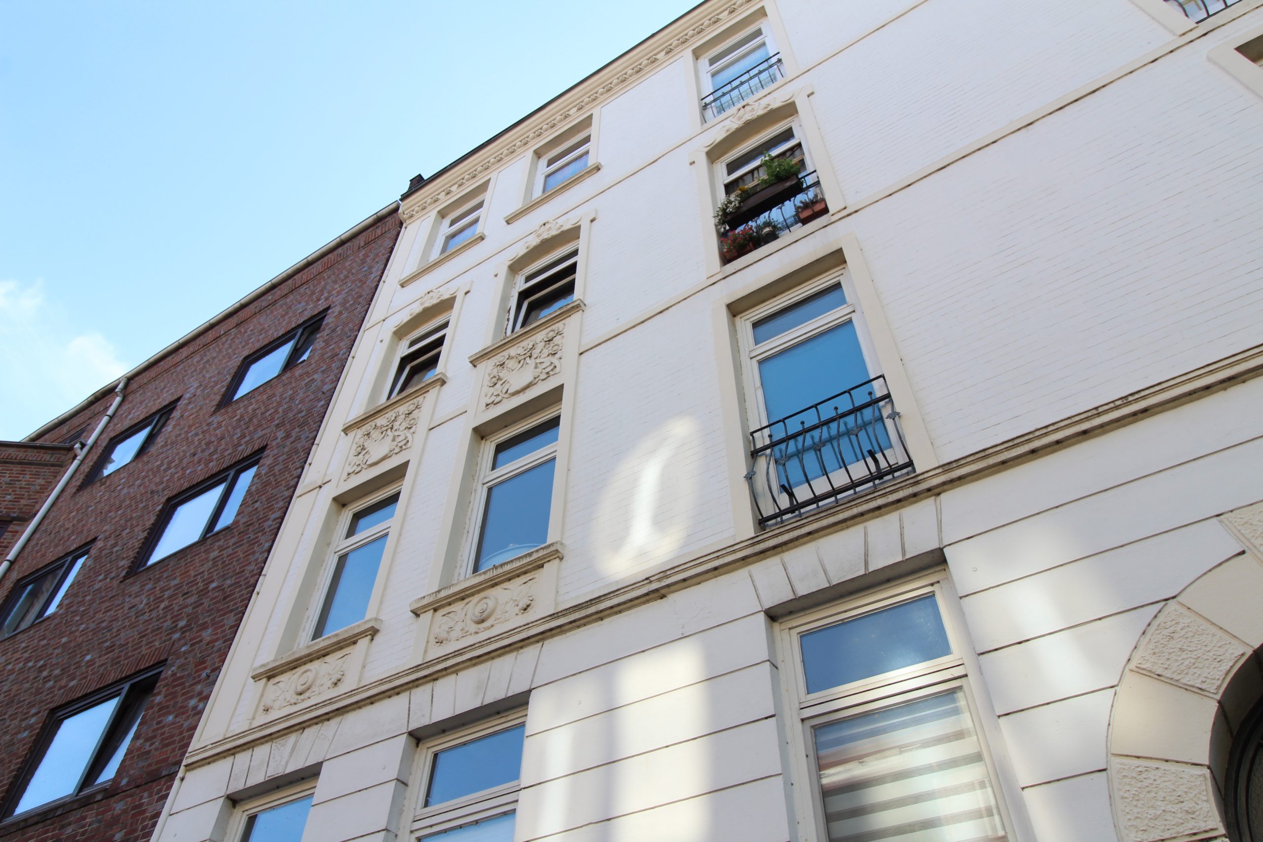 Zu der Wohnung gehört ein schöner kleiner Balkon mit einem direkten Zugang zum Gemeinschaftsgarten. Vor der Haustür hat man also die Stadt und hinter dem Haus eine kleine Oase zum Entspannen und Sonne tanken.
