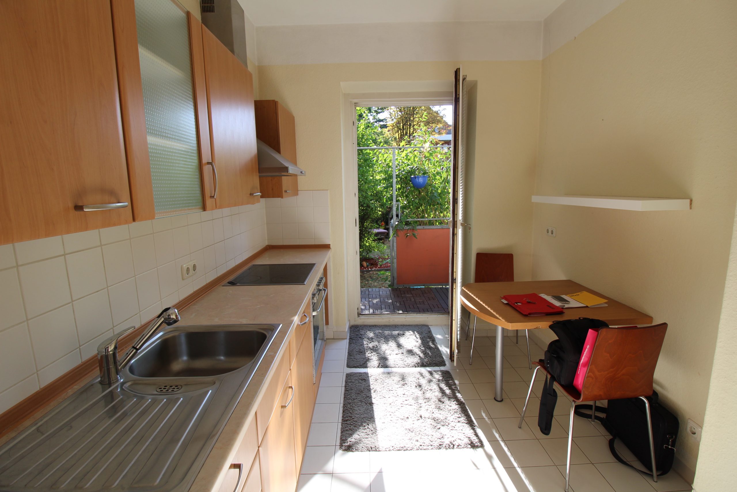 Von der Küche aus gibt es einen Zugang zum Süd-Balkon, welcher auch eine Treppe zum hauseigenen Garten bereithält. Wer sich gerne im Garten aufhält, kommt hier also voll auf seine Kosten.