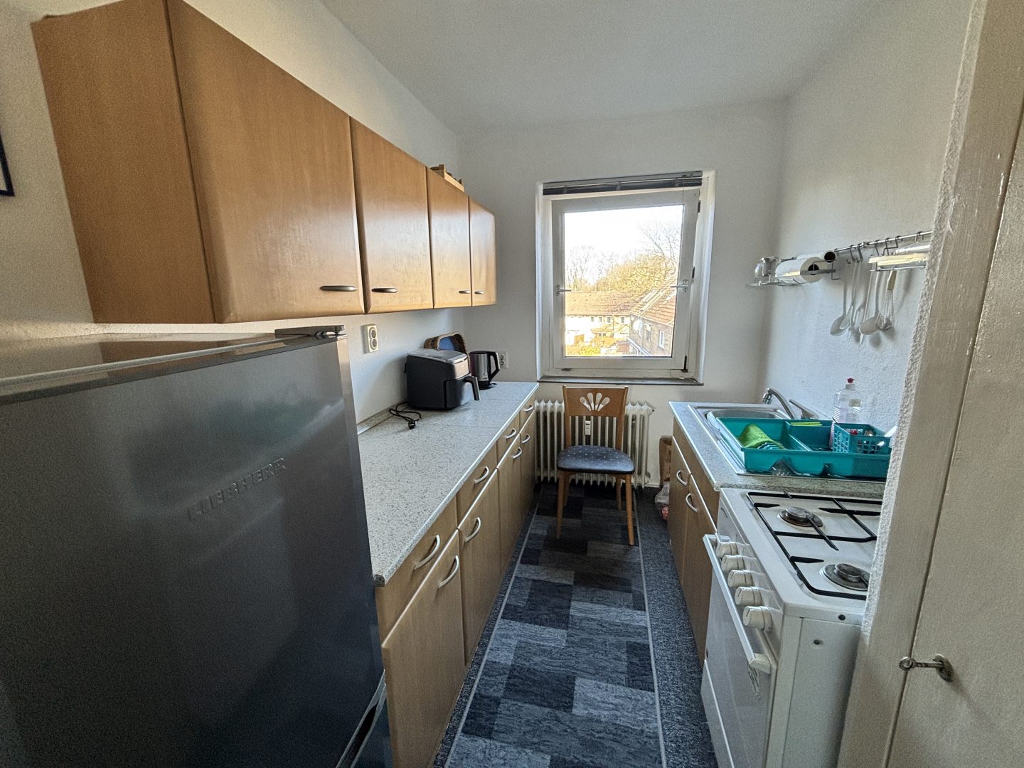 Ein besonderes Highlight ist die hervorragende Verkehrsanbindung: Die S-Bahn-Station Elbgaustraße (Linien S3 und S5) befindet sich in unmittelbarer Nähe. Von hier aus erreichen Sie den Hamburger Hauptbahnhof in ca. 24 Minuten und den Bahnhof Altona in nur etwa 15 Minuten – ideal für Pendler. Die Wohnung selbst ist funktional ausgestattet: Kunststofffenster, eine Einbauküche sowie ein hell gefliestes Duschbad gehören zur Grundausstattung. Der Zustand ist insgesamt einfach, aber gepflegt. Perspektivisch sollte die Elektroverteilung innerhalb der Wohnung erneuert werden.