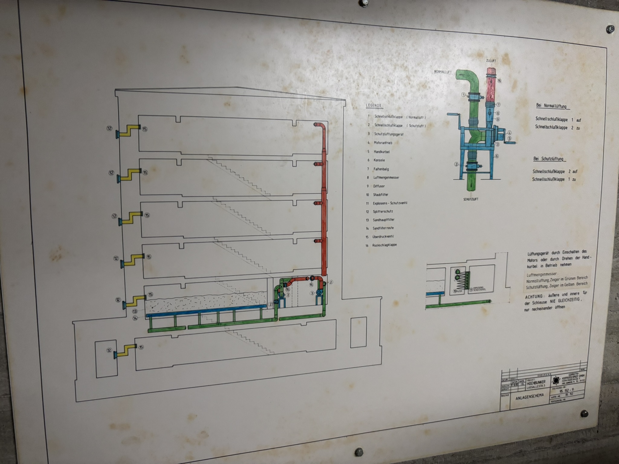 Elektrik und Lüftungsanlage des Bunkers wurden zuletzt ca. 1989 vor dem Mauerfall erneuert.