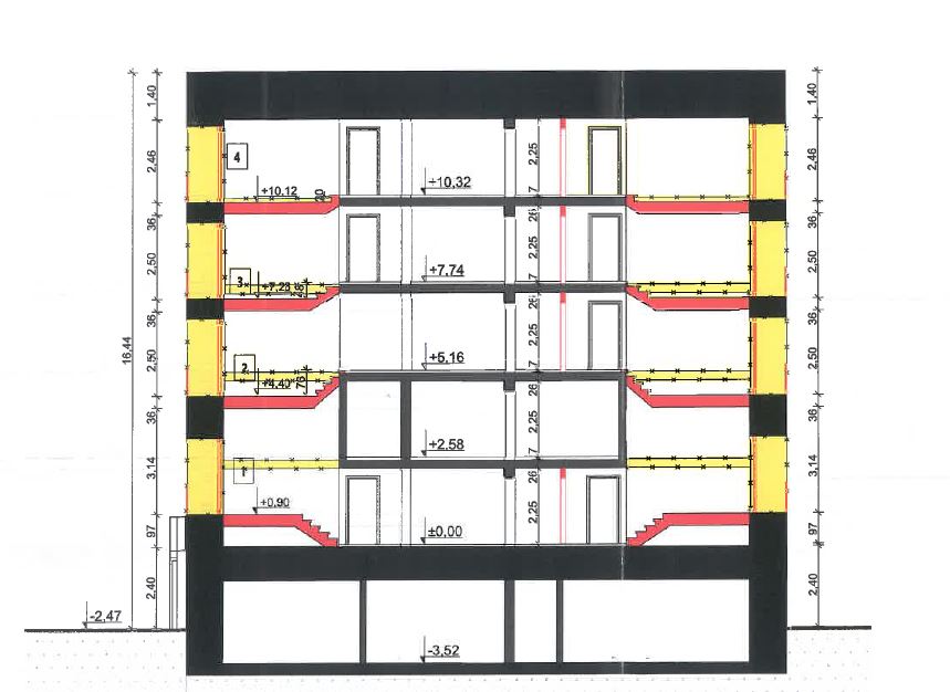 Im Untergeschoss befinden sich Technikräume, sowie Platz für mögliche Kellerräume für die Bewohner, Müll- und Fahrradräume. Darüber liegen noch fünf Geschosse, wobei die Böden und Decken im zukünftigen Wohnbereich angepasst werden müssen, um die erforderliche Raumhöhe zu erreichen (siehe Schnitt). Geplant sind vier Etagen mit z. B. jeweils vier Zwei-Zimmer-Wohnungen, insgesamt also 16 Wohneinheiten. Das Treppenhaus befindet sich im Zentrum des Bunkers; ein Aufzug könnte seitlich in einem Anbau ergänzt werden. Das Grundstück hinter dem Bunker kann als Kinderspielfläche genutzt werden.