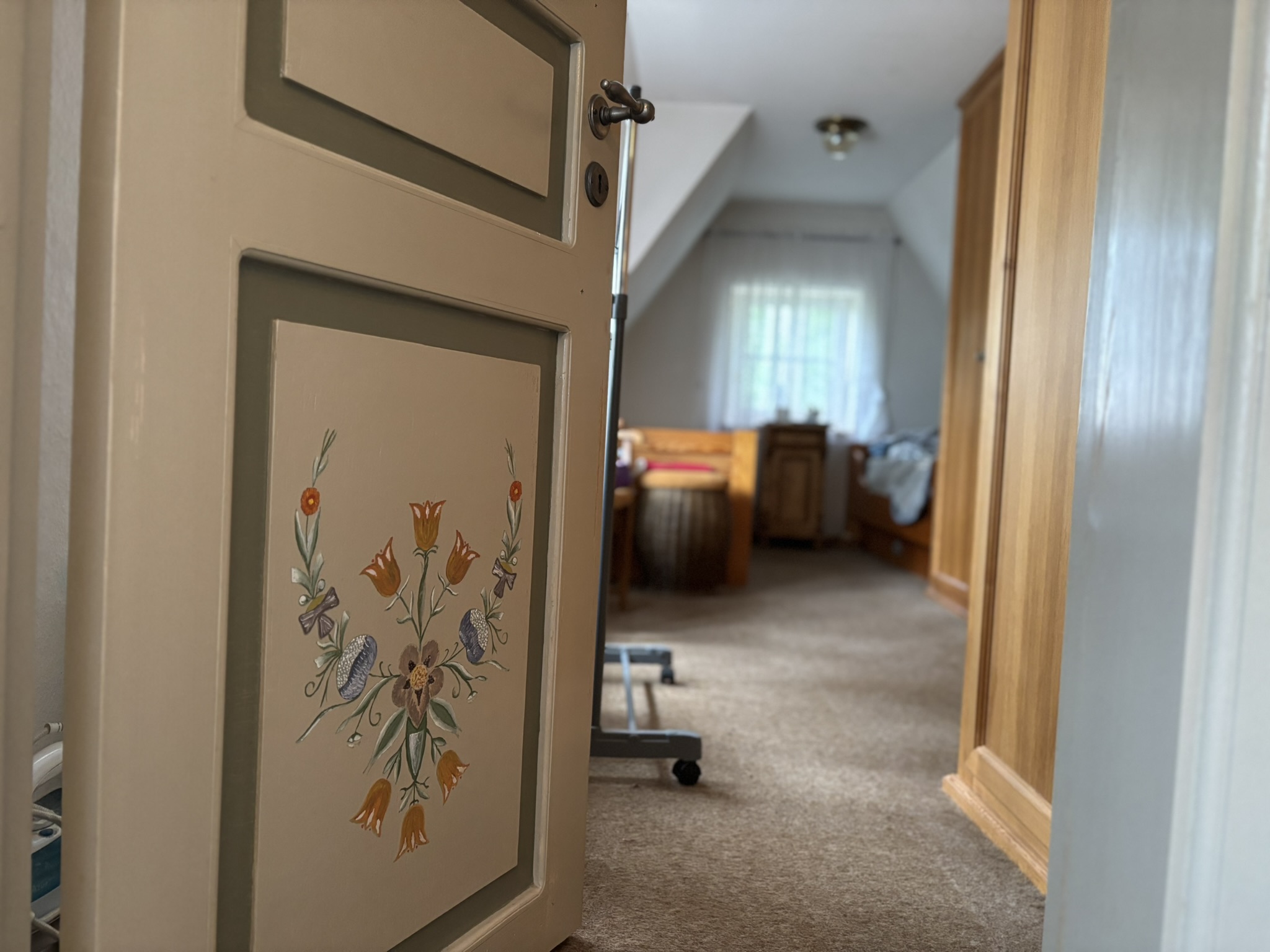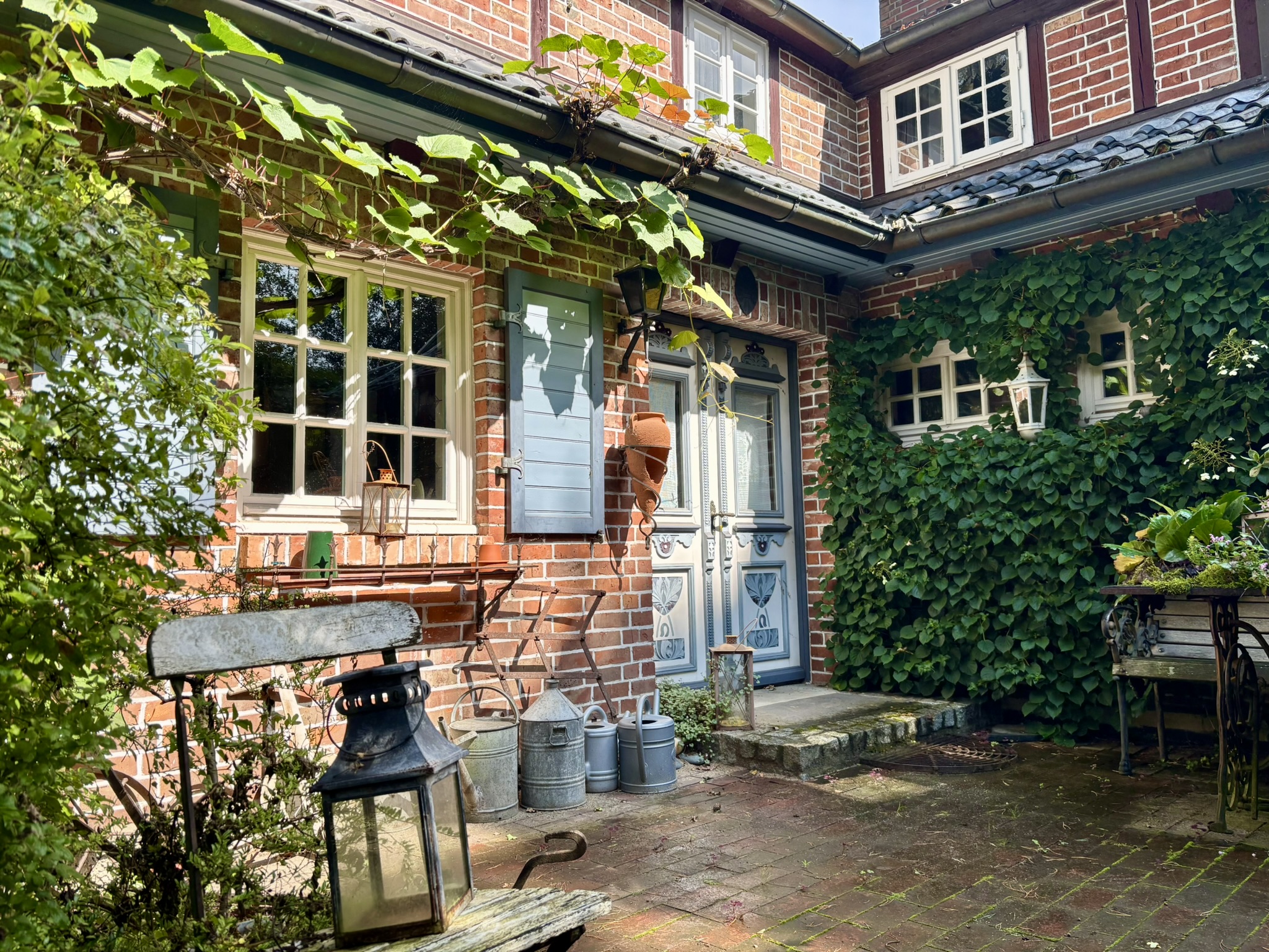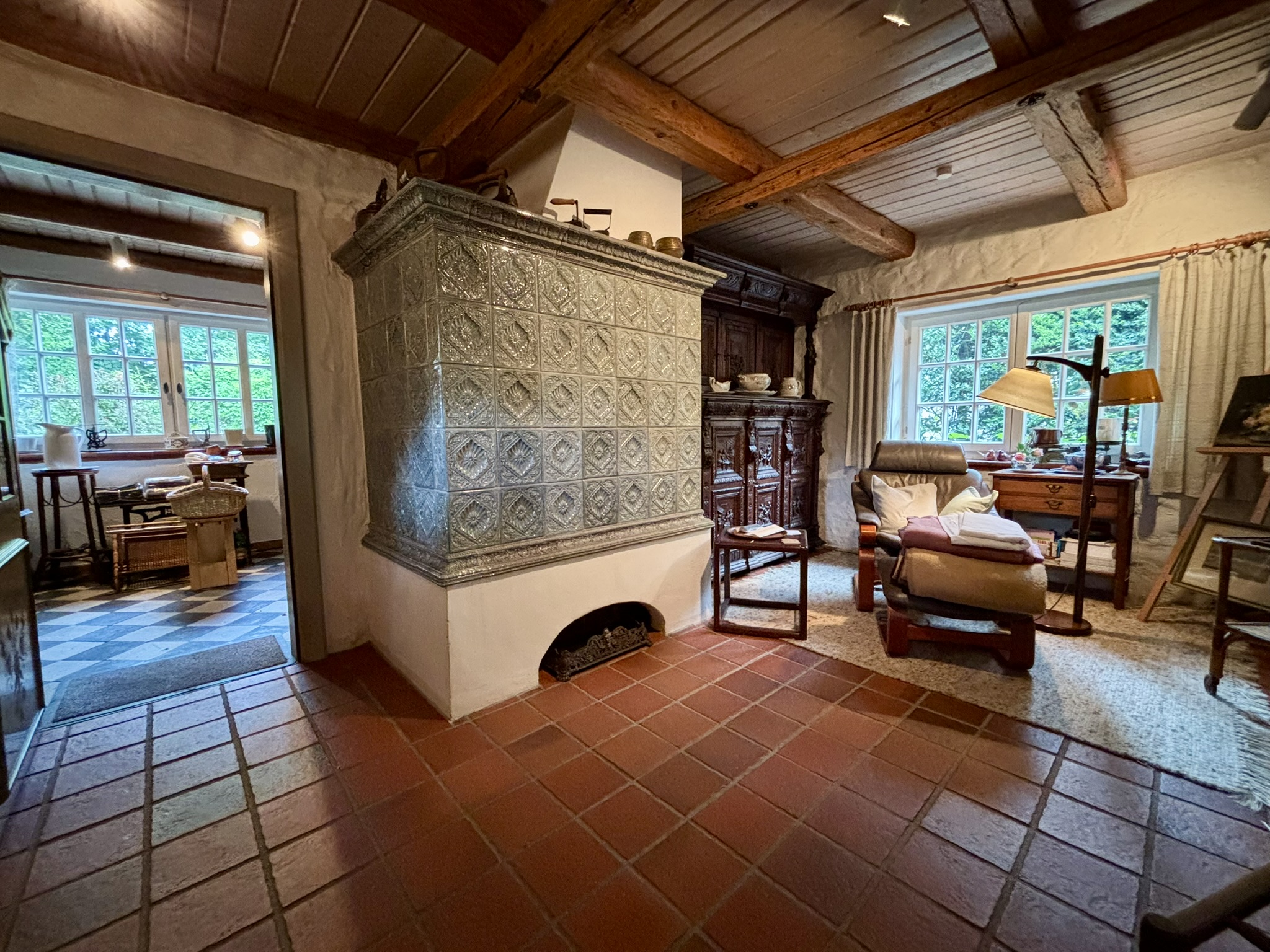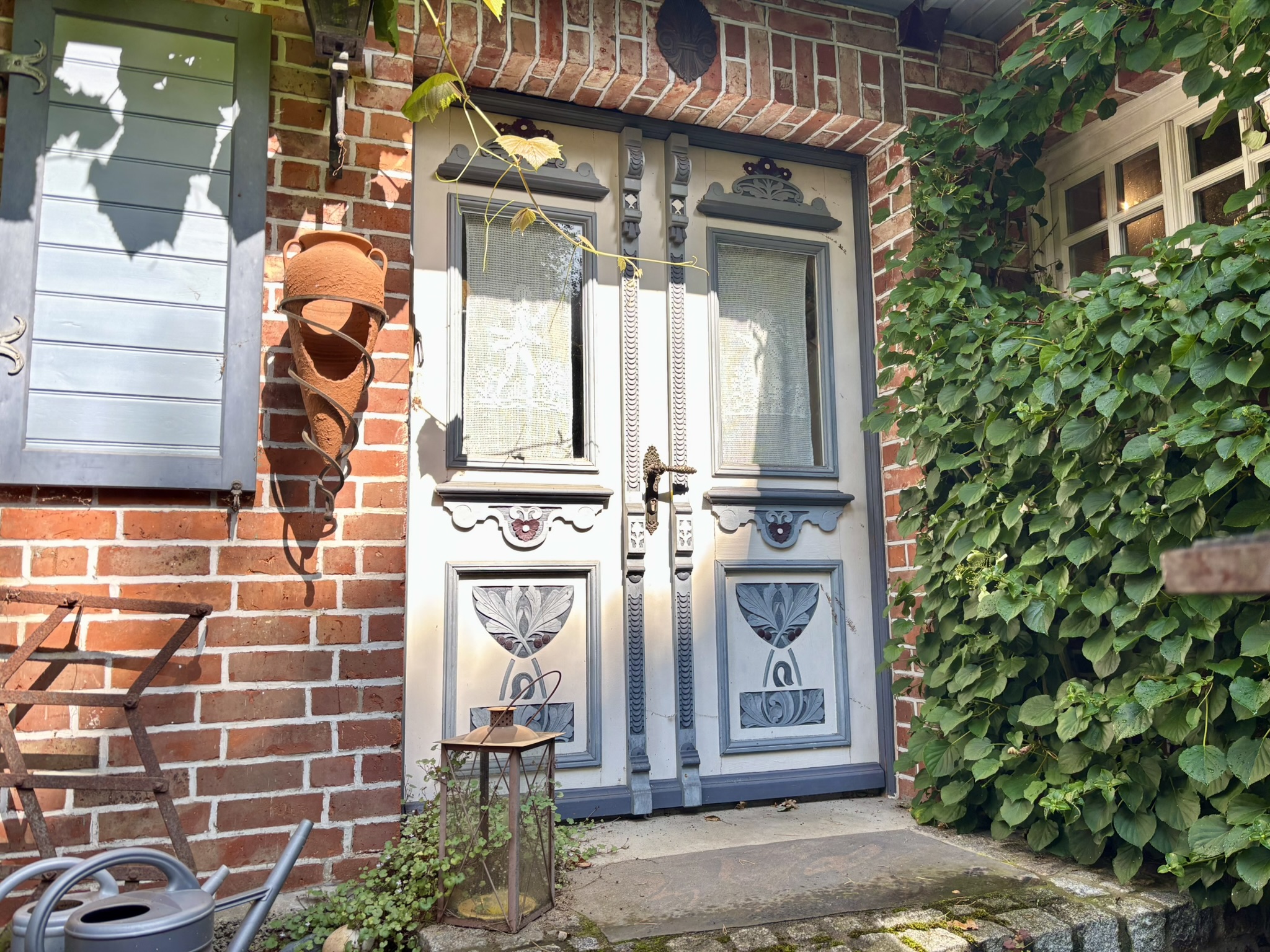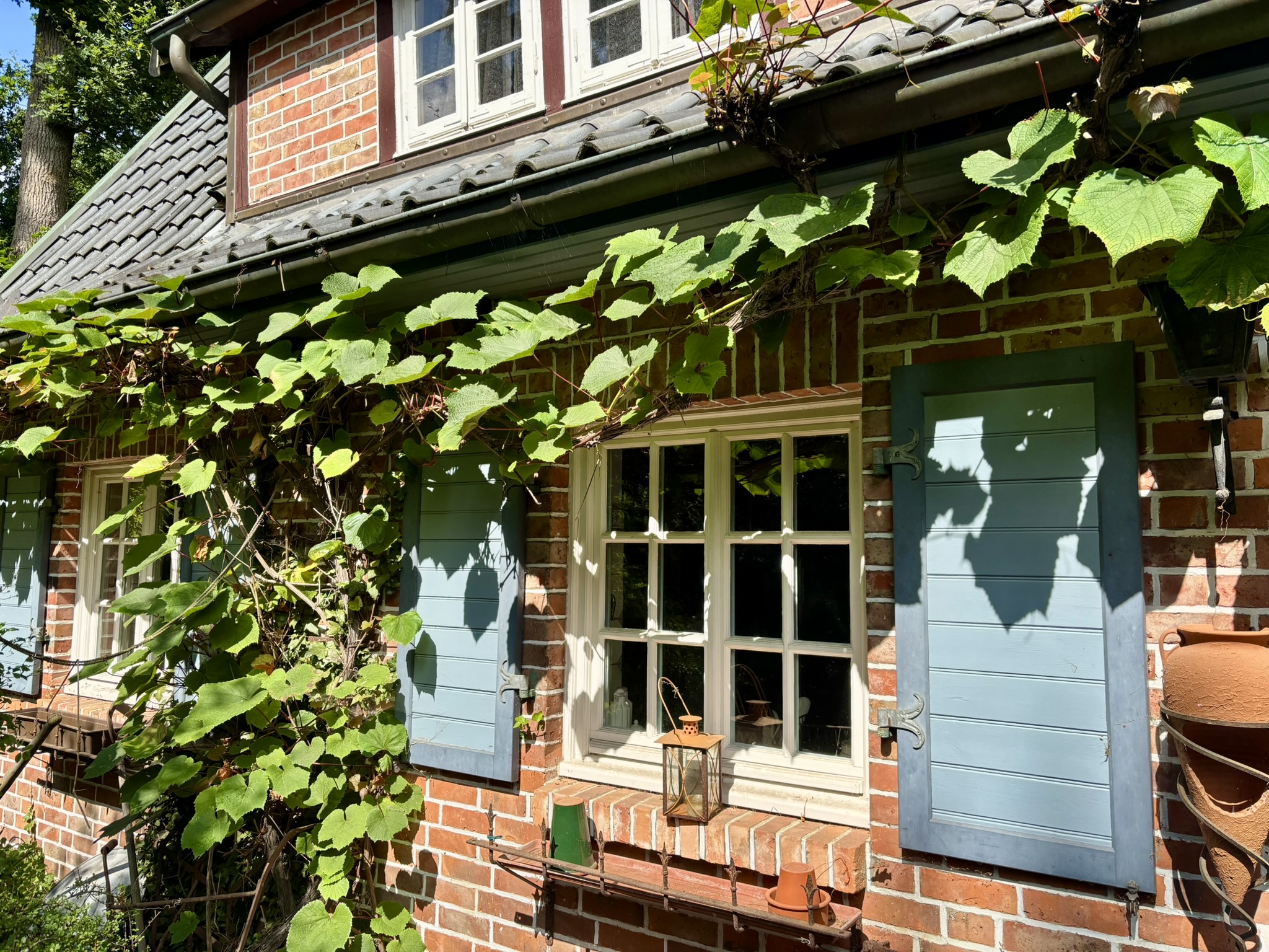 Fußbodenheizung im EG, Dachgauben im Fachwerk-Stil, Carport, Teilkeller, Auffahrt, Seeve-Zugang, Zentralheizung, Kachelofen, Fensterläden, schöne Holztüren, Holzbalkendecken