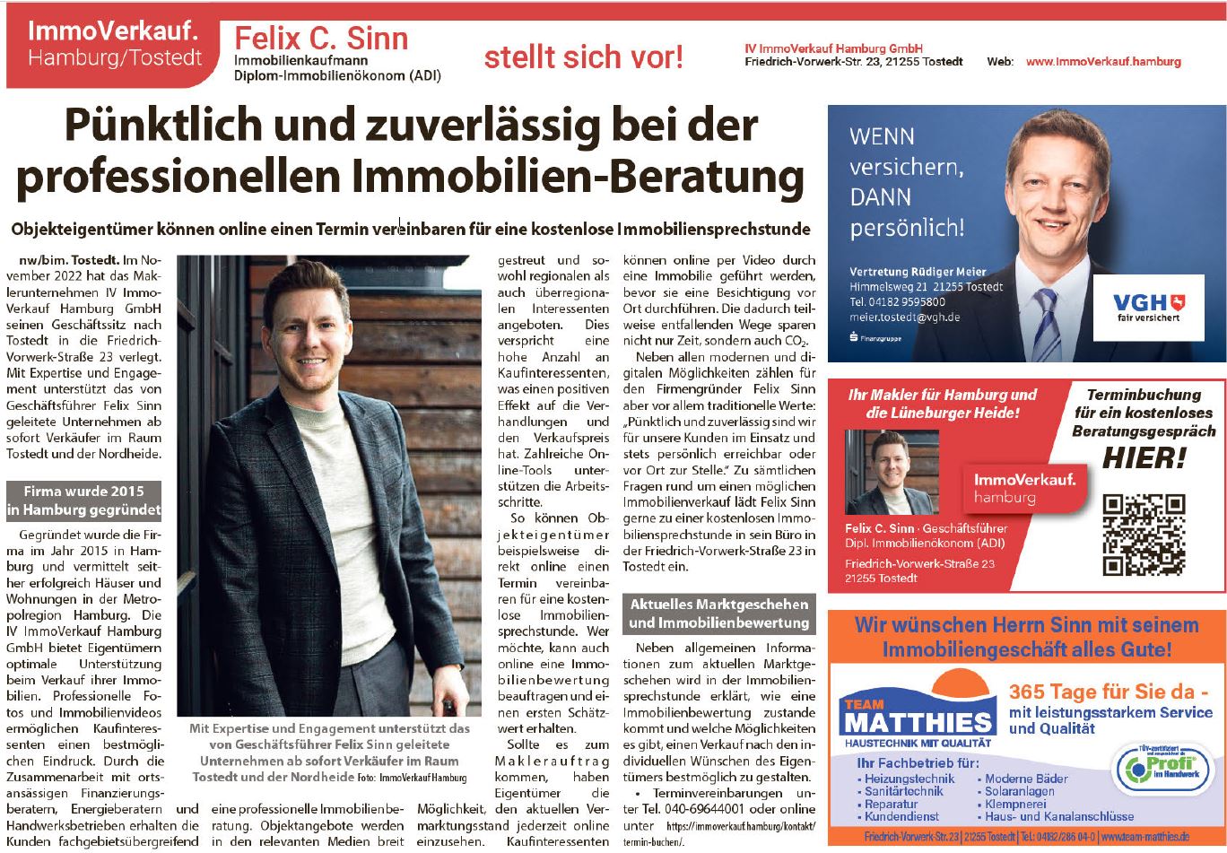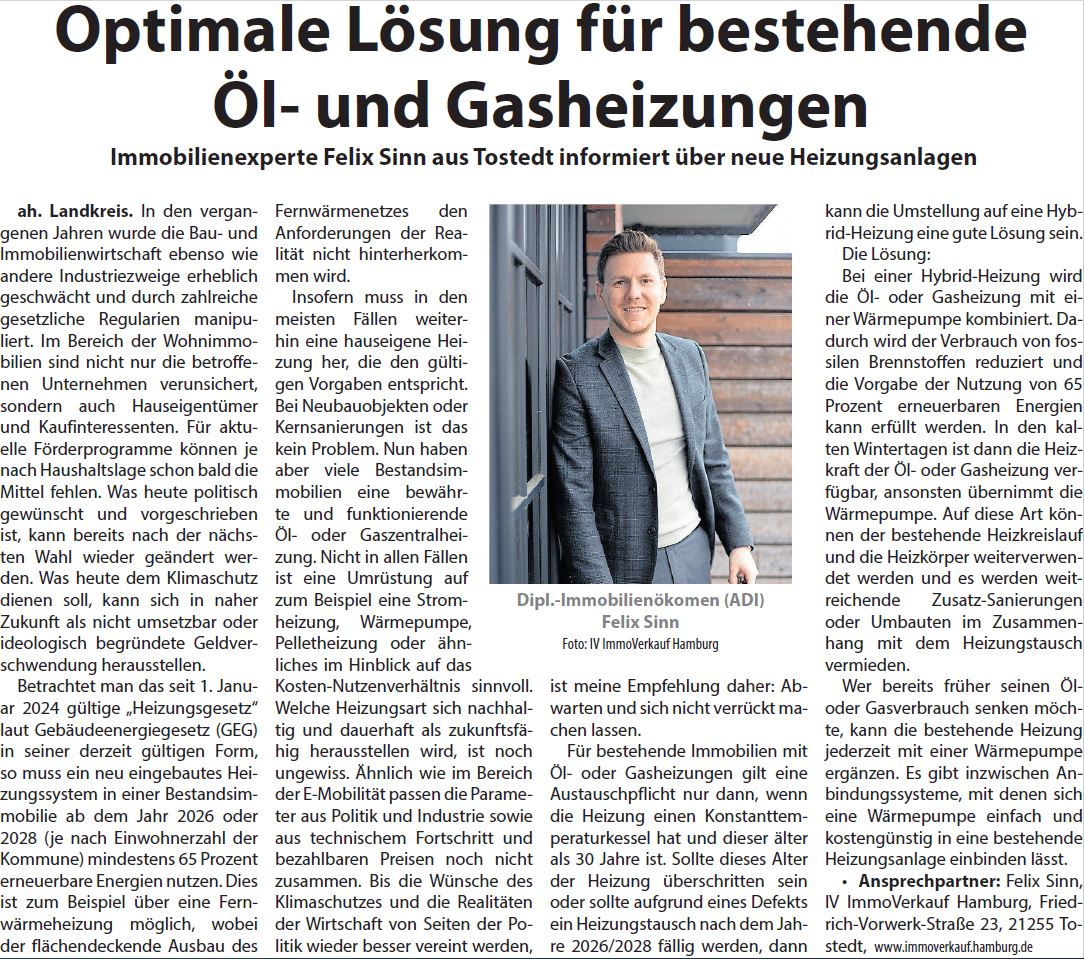 Entdecken Sie Artikel über Felix Sinn und ImmoVerkauf Hamburg in regionalen Zeitungen und Fachmedien. Die Beiträge geben Einblicke in Immobilienprojekte, Marktentwicklungen und praxisnahe Beratungsthemen.